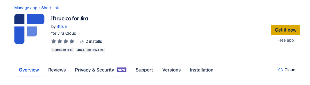 Keep the next screen open and go to Atlassian marketplace listing for iftrue by clicking herearrow-up-right or search from the marketplace by writing iftrue.co for Jira